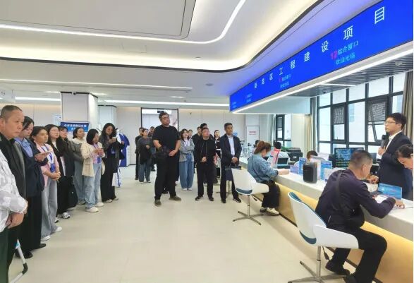 考察组一行实地参观了区政务服务中心,重点观摩了大厅标准化建设、服务专区设置、综合受理窗口和“信用修复一件事”窗口运行等情况,详细了解了“工改”专区推进信用修复和企业上市信息核查“一码通办”“一码核查”特色服务的流程设计和实践成效。中心工作人员现场演示了通过信用平台调取市场主体公共信用信息、实施分级分类监管与服务的具体操作,展现了信用信息在优化审批流程、提升服务效率中的支撑作用。