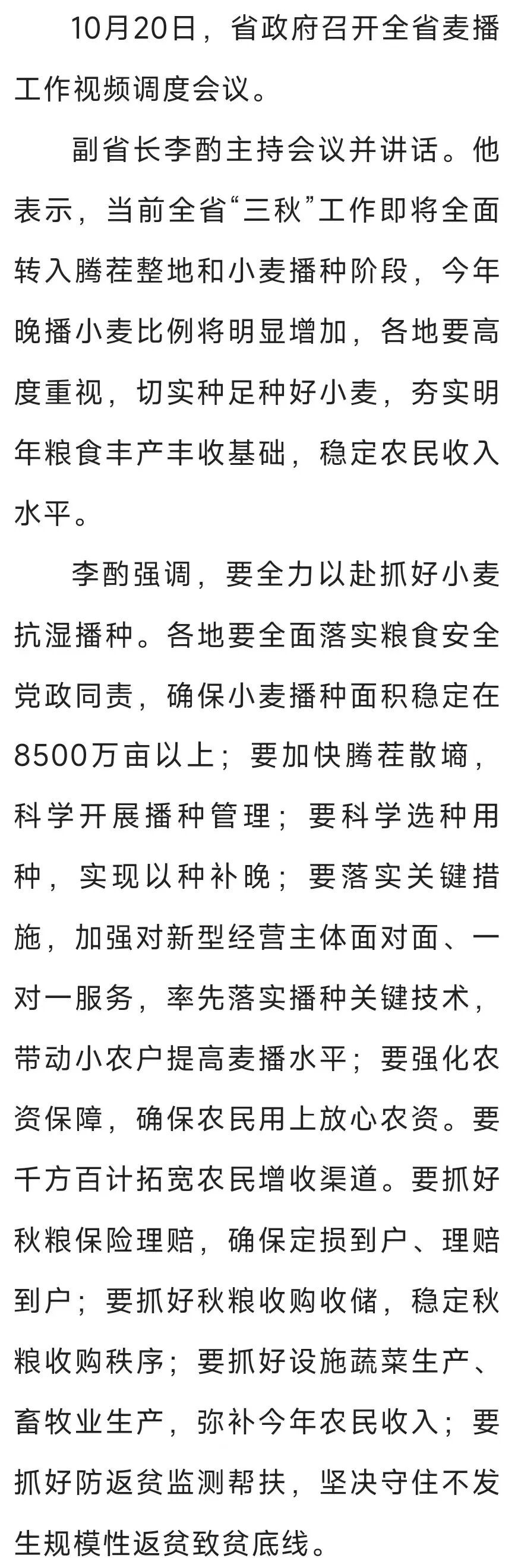 要闻丨省政府召开全省麦播工作视频调度会议 副省长李酌主持并讲话
